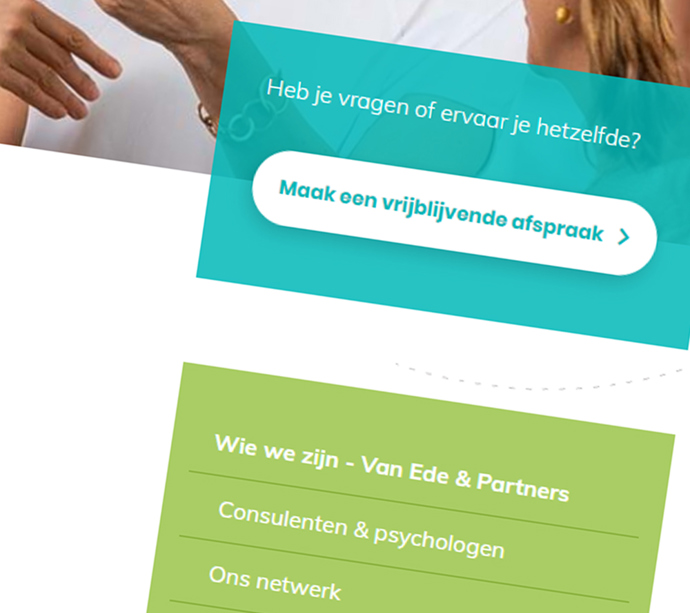 Van Ede & Partners is een organisatie gericht op loopbaancoaching. Zij zetten zich in voor mensen en helpen bij het recht doen aan talenten, kennis en ervaring die plezier doen en voldoening geven. Door dat de afgelopen jaren het aanbod steeds meer met elkaar vervlochten is geraakt, kwam er een sterke behoefte om ook online een verdiepingsslag in te slaan: het strategischer inzetten van online communicatie, om de boodschap beter aan de doelgroep over te brengen. Samen gingen we aan de slag om de strategie te herzien, idem voor de look en feel.